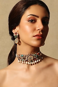 22K Gold Plated Floral Ruby And Emerald Studded Jhumkas