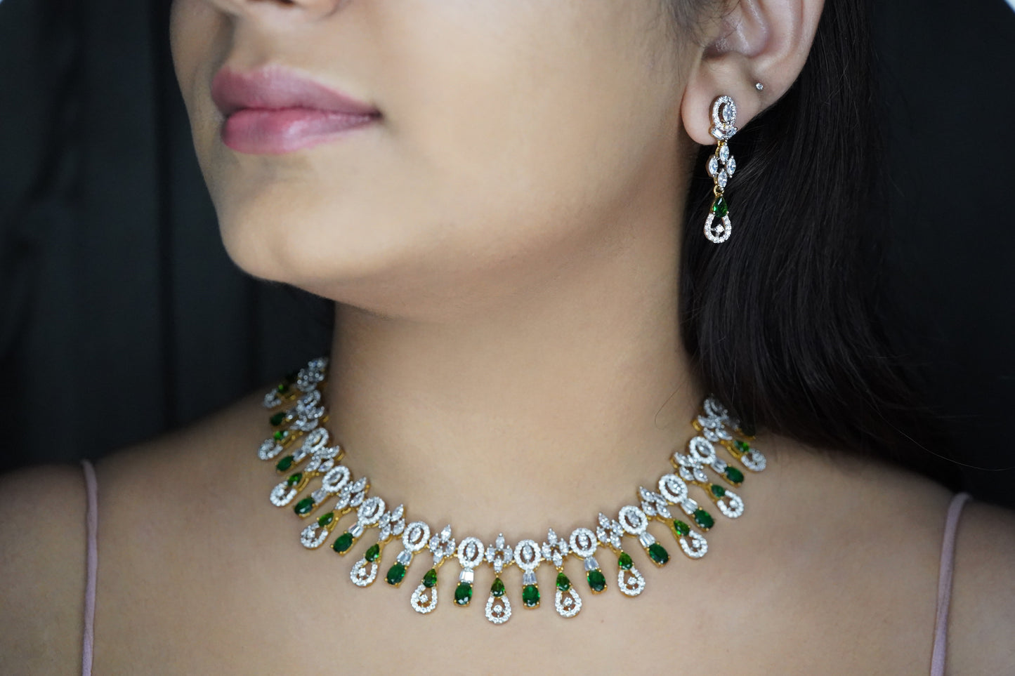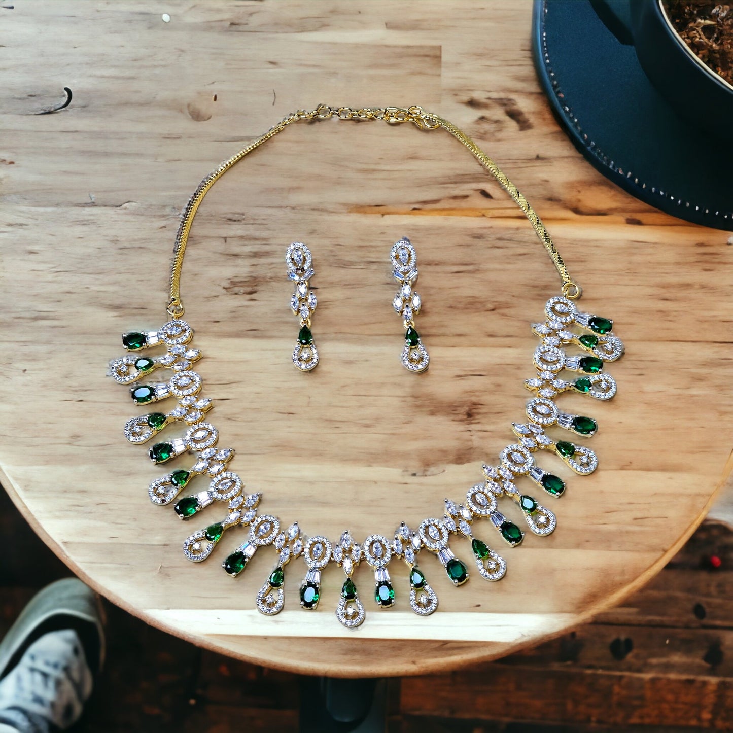 Elevate your elegance with the exquisite ALYSSA Diamond Necklace Set . Crafted for the modern woman who appreciates both sophistication and style, this stunning jewelry set is designed to turn heads and leave a lasting impression. The centerpiece of the ALYSSA set is a breathtaking necklace adorned with brilliant, ethically sourced diamonds that catch the light beautifully, creating a dazzling effect. Each diamond is meticulously set in high-quality sterling silver or gold plating, ensuring durability while maintaining a luxurious appearance. This set includes matching earrings that perfectly complement the necklace, enhancing your look for any occasion—be it a formal event or a casual outing. The lightweight design ensures comfortable wear, allowing you to shine throughout the day or night. The ALYSSA Diamond Necklace Set comes beautifully packaged, making it an ideal gift for birthdays, anniversaries, or as a special treat for yourself. With its timeless design, this set transcends trends and can be cherished for years to come. Make a statement with the ALYSSA Diamond Necklace Set – where elegance meets versatility.