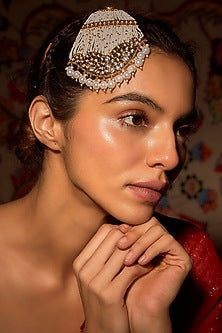 Add a touch of elegance and sophistication to your hair with our Gold Finish White Pearl Pasa. This stunning hair accessory is perfect for special occasions such as weddings, proms, and parties. Made with high-quality materials, our pasa features a beautiful gold finish and is adorned with white pearls that shimmer in the light. The intricate design of the pasa adds a touch of intricacy and charm to any hairstyle. Our Gold Finish White Pearl Pasa is versatile and can be styled in various ways. Whether you have long hair or short hair, our pasa can be easily incorporated into any hairstyle. It can be worn as a traditional pasa, or as a hair clip to hold back loose strands. Not only is our pasa stylish and functional, but it is also comfortable to wear. Its lightweight design ensures that it won't weigh down your hair or cause any discomfort. This Gold Finish White Pearl Pasa makes a perfect gift for yourself or your loved ones. It comes in a beautiful box, making it ready for gifting on any special occasion. Don't miss out on this must-have hair accessory. Order yours today and add a touch of glamour to any outfit with our Gold Finish White Pearl Pasa.