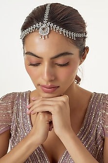 House of Aster presents a white finish mathapatti studded with zircons, set in mixed metal. This mathapatti is a testament to refined taste and timeless style, ideal for festive or wedding ceremonies.