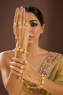Gold Finish Floral Hand Harness (Set Of 2)