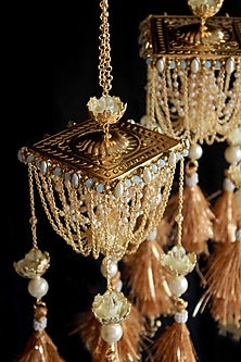 Enhance your traditional attire with our exquisite Gold Finish Beaded Kaleeras . This stunning set of two kaleeras is designed to add a touch of elegance and charm to your look, making them a perfect accessory for weddings and festive occasions. Crafted with meticulous attention to detail, these kaleeras feature a beautiful gold finish adorned with intricate beadwork that sparkles in the light. The combination of contemporary design with classic elements ensures that you stand out in any gathering. Each kaleera is delicately hung, creating a graceful sway with every movement, symbolizing blessings and good fortune. Versatile and lightweight, these kaleeras can be easily paired with a variety of traditional outfits, including lehengas, sarees, and anarkalis. They are not just accessories; they embody tradition and style, making them an essential addition to your jewelry collection. Perfect as a gift for brides or for celebrating special moments, our Gold Finish Beaded Kaleeras (Set of 2) will undoubtedly become a cherished piece in any jewelry box. Add a dash of glamour to your ensemble and let your beauty shine through with these elegant kaleeras!