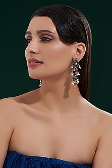 Featuring a pair of oxidised silver finish dangler earrings studded with multi-colored stones, set in 92.5 sterling silver.