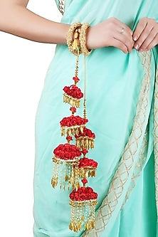 Elevate your traditional attire with our stunning Gold Finish Kaleeras crafted in high-quality alloy. These exquisite adornments blend elegance and cultural charm, making them an essential accessory for brides and festive occasions. Featuring a lustrous gold finish, these kaleeras radiate a luxurious shine that captures attention from every angle. The intricate detailing showcases the artistry involved in their design, reflecting a perfect balance between modern aesthetics and classic traditions. Each piece is lightweight and comfortable, ensuring that you can wear them throughout your special day without any discomfort. Whether you're dressing up for a wedding, festival, or any celebration, these kaleeras will add the perfect finishing touch to your look. They pair beautifully with a variety of outfits, from lehengas to sarees, enhancing your overall elegance. The gold finish complements all skin tones, making it a versatile choice for any wardrobe. Embrace the beauty of tradition while making a style statement with our Gold Finish Kaleeras. Perfect for gifting or treating yourself, these stunning accessories are sure to be a cherished addition to your jewelry collection. Product Highlights: High-quality alloy construction Elegant gold finish Intricate detailing Lightweight and comfortable