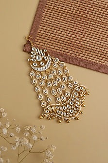 Elevate your ethnic ensemble with our exquisite Gold Finish Kundan Polki & Freshwater Pearl Pasa. This stunning piece is a perfect blend of tradition and contemporary elegance, designed to make you stand out on any special occasion. Design & Craftsmanship Handcrafted by skilled artisans, the pasa features intricate Kundan Polki work that showcases the age-old art of gemstone setting. The gold finish adds a touch of luxury, while the shimmering Freshwater pearls lend an ethereal grace, making it a must-have accessory for weddings, festivals, or any celebratory event. Versatile Elegance This pasa can be elegantly worn in multiple ways, whether as a traditional adornment or paired with modern outfits for a unique fusion look. Its lightweight design ensures that you can wear it comfortably throughout the day, making it an ideal choice for brides and bridesmaids alike. Care Instructions To maintain the brilliance of your Gold Finish Kundan Polki & Freshwater Pearl Pasa, avoid exposure to moisture and store it in a cool, dry place. Clean gently with a soft cloth to preserve its shine and luster. Embrace the timeless beauty of Indian heritage with this stunning pasa that promises to enhance your style and leave you feeling truly radiant.