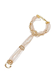 Gold Finish Kundan Polki & Shell Pearl Floral Hathphool