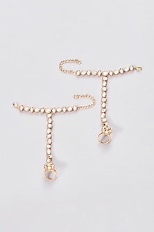 Gold Finish Kundan Polki Hathphool (Set of 2)