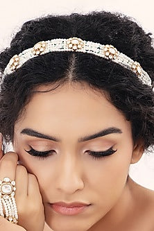 Elevate your traditional look with our stunning Gold Finish Mathapatti. This intricately designed headpiece is perfect for weddings, festivals, and other special occasions. It features a beautiful gold finish and delicate detailing, making it a must-have accessory for any Indian outfit. This Mathapatti is made from high-quality materials, ensuring durability and long-lasting shine. Its adjustable chain allows for a comfortable and secure fit, making it suitable for all head sizes. The classic design and versatile color make it the perfect accessory for any traditional attire. Gold finish for a luxurious look Adjustable chain for a comfortable fit Intricate detailing for a traditional touch High-quality materials for durability Suitable for all head sizes Add to Cart