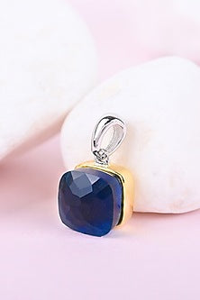Gold Finish Midnight Blue Stone & Zircon Pendant Set In Sterling Silver