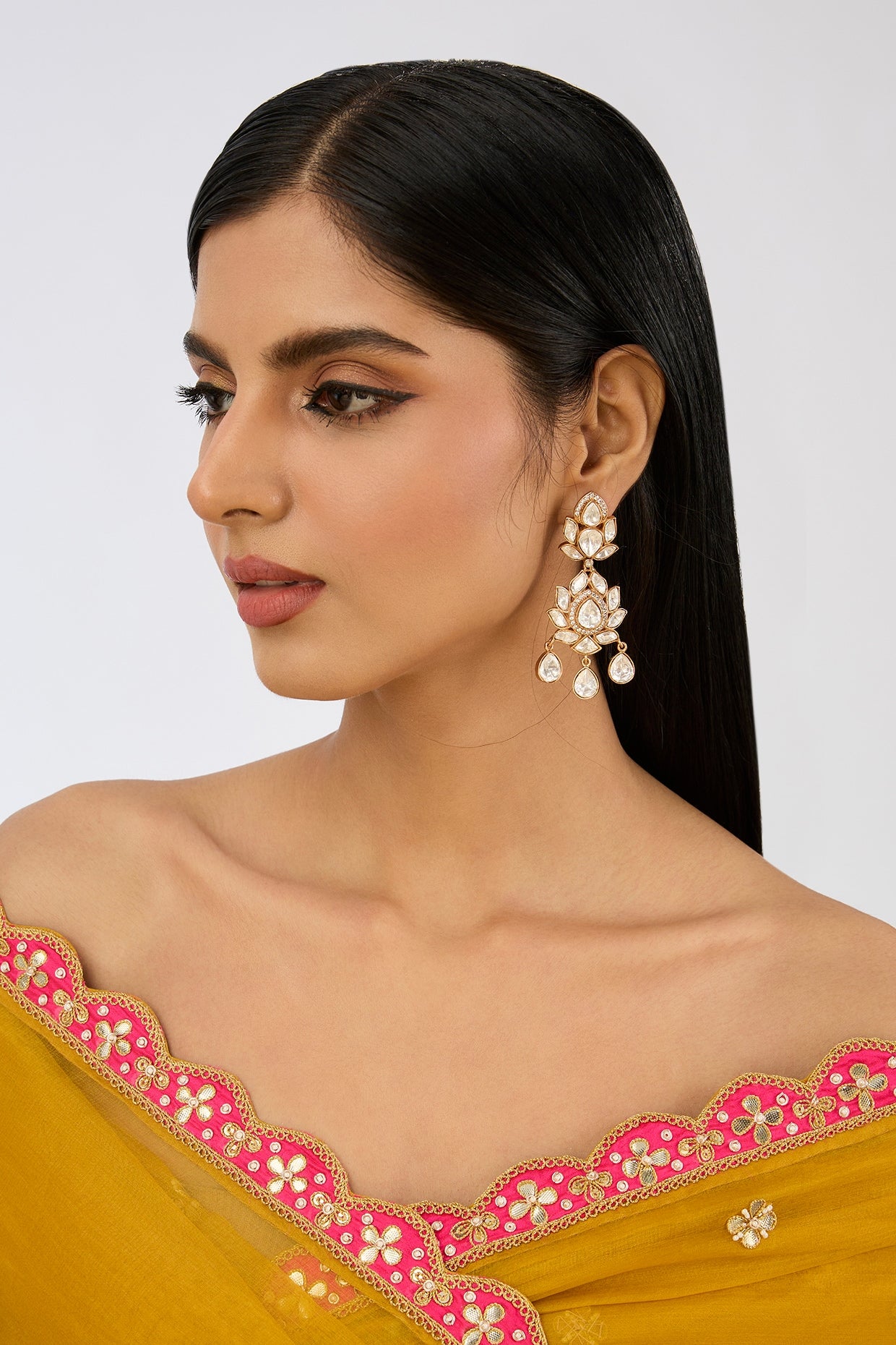 Add a touch of elegance to any outfit with our Gold Finish Moissanite Dangler Earrings. These stunning earrings feature a delicate design with a dazzling moissanite stone at the center. The gold finish adds a luxurious touch, making them perfect for a special occasion or everyday wear. Made with high-quality materials, our Gold Finish Moissanite Dangler Earrings are durable and long-lasting. The moissanite stones are known for their brilliance and are a popular alternative to traditional diamonds. They are also more affordable, making them an excellent choice for those looking for a beautiful piece of jewelry without breaking the bank. These earrings make a wonderful gift for a loved one or a treat for yourself. They come in a beautiful gift box, ready to be given on any occasion. Whether it's for a birthday, anniversary, or just to show someone how much they mean to you, these earrings are sure to impress. Price: *insert price here* Add to Cart