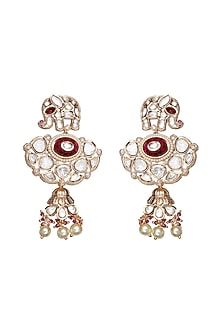 Featuring a gold finish mala studded with kundan polki, pearl beads and faux diamonds, set in brass. It is paired with a matching pair of earrings. Perfect wear for festive occasions or wedding ceremonies.