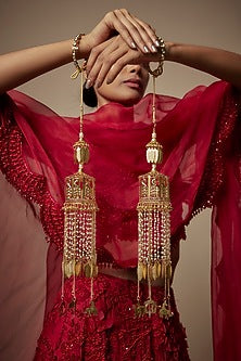Gold Finish Pearl & Bird Motif Tying Kaleeras (Set Of 2)