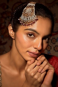 Add a touch of elegance and sophistication to your outfit with our Gold Finish Red Pearl Pasa. This stunning piece features a gold finish and is adorned with beautiful red pearls, making it the perfect accessory for any special occasion. Made with high-quality materials, this pasa is not only beautiful but also durable. The gold finish gives it a luxurious and timeless look, while the red pearls add a pop of color and femininity. The intricate design is eye-catching and will surely make you stand out in any crowd. This Gold Finish Red Pearl Pasa is versatile and can be paired with a traditional Indian outfit or a modern western attire, making it a must-have accessory for any fashion-forward woman. It also makes for a thoughtful and unique gift for your loved ones. Buy Now
