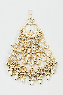 Gold Finish Yellow Kundan Polki & Pearls Chand Pasa