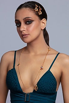 Gold Plated Crystal Baguettes Handcrafted Mask Chain