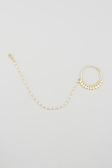 Featuring a 22 Kt gold plated nath studded with white jadtar stone, set in silver and copper mix.