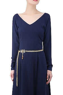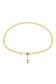 Enhance your ensemble with our exquisite Gold Plated Tiger's Eye Stone Statement Belt , a stunning piece of artistry that combines traditional craftsmanship with modern elegance. This statement kamarbandh is designed to add a touch of sophistication to any outfit, whether it's a saree, lehenga, or even a chic dress. Crafted with meticulous attention to detail, this belt features a radiant gold plating that beautifully complements the rich, earthy tones of the tiger's eye stone. Known for its protective qualities and grounding energy, tiger's eye is believed to bring balance and harmony, making this belt not just a fashion accessory but also a symbol of strength and confidence. The adjustable design ensures a perfect fit for all body types, allowing you to wear it comfortably throughout the day or night. Its unique design and versatility make it an ideal choice for weddings, festivals, or any special occasion. Stand out and make a statement with this timeless accessory that celebrates both style and heritage. Add the Gold Plated Tiger's Eye Stone Statement Belt to your jewelry collection today and elevate your fashion game to new heights!