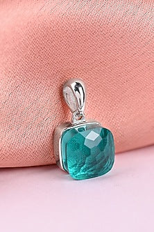 Green Stone & Zircon Pendant Set In Sterling Silver