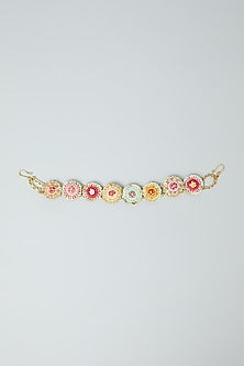 Featuring a mathapatti with resham, dabka and kasab hand embroidery, set in brass.