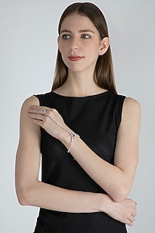 Elevate your traditional attire with our stunning Rose Gold Finish Diamond & Green Stone Hath Phool . Crafted with precision and elegance, this exquisite piece is designed to add a touch of sophistication and glamour to any occasion. The intricate design showcases a brilliant array of diamonds that sparkle with every movement, beautifully complemented by vibrant green stones that symbolize harmony and growth. The rose gold finish gives this hath phool a warm, luxurious glow that enhances its charm, making it a perfect accessory for weddings, festivals, or any special event. Comfort and style come together in this piece, featuring an adjustable design that fits comfortably on your hand while allowing you to express your unique style effortlessly. Whether paired with traditional lehengas or contemporary outfits, this hath phool is sure to turn heads and make a statement. Indulge in the beauty of this masterpiece and embrace the art of accessorizing with our Rose Gold Finish Diamond & Green Stone Hath Phool. Perfect for gifting or as a treat for yourself, this stunning accessory captures the essence of elegance and timeless beauty. Make every moment special with this captivating hath phool—your new favorite piece awaits!