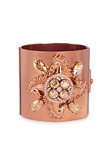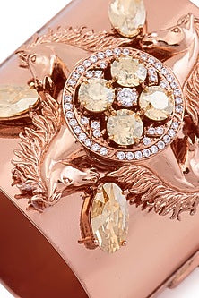 Rose Gold Finish Swarovski Crystal Horse Motif Handcuff In Sterling Silver