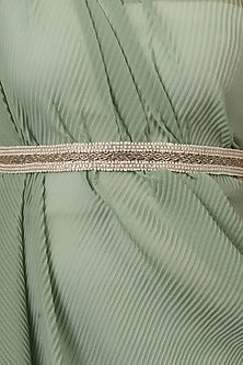 Description: Add a touch of elegance to your outfit with our Silver Finish Belt With Beads. This beautiful belt is perfect for any occasion and will instantly elevate your look. The silver finish gives it a sleek and sophisticated look, while the beads add a touch of glamour. Material: This belt is made of high-quality metal with a silver finish. The beads are made of glass, giving them a shimmery and luxurious appearance. Features: Lightweight and comfortable to wear Adjustable length to fit most waist sizes Silver finish for a sleek and modern look Decorated with beautiful glass beads Styling Tips: Pair this belt with a little black dress for a chic and classic look. You can also wear it with a flowy maxi dress to cinch in your waist and add some sparkle to your outfit. For a more casual look, wear it with high-waisted jeans and a blouse. Make a statement and add a touch of sophistication to any outfit with our Silver Finish Belt With Beads. Order now and elevate your wardrobe!