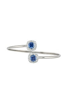 Featuring a silver rhodium finish openable handcuff studded with blue zircons, set in 92.5 sterling silver. Perfect wear for festive occasions or wedding ceremonies.