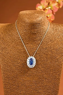 White Gold Finish Eurostar Zircon & Sapphire Pendant Set In Sterling Silver