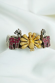 Featuring a two-tone finish red enameled openable cuff studded with deer motifs, set in 92.5 sterling silver. Perfect for a festive wear, cultural event or gifting.