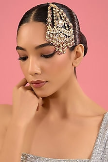 Elevate your ethnic ensemble with our exquisite Two-Tone Finish Kundan Polki & Red Pearl Pasa . This stunning piece of jewelry embodies the rich heritage of traditional Indian craftsmanship while seamlessly blending with contemporary aesthetics. Crafted with precision, the pasa features a captivating two-tone finish that adds depth and sophistication. The intricate Kundan Polki stones are set in a delicate gold-toned base, reflecting light in a mesmerizing dance, making it a perfect accessory for any festive occasion or wedding celebration. The vibrant red pearls accentuate the beauty of the design, adding a touch of opulence and grace. Lightweight yet striking, this pasa comfortably adorns your hair, ensuring you look your best without compromising on comfort. Its versatile style allows it to complement a variety of outfits, from traditional lehengas to modern fusion wear. Whether you're the bride, a bridesmaid, or a guest, this Two-Tone Finish Kundan Polki & Red Pearl Pasa is sure to turn heads and garner compliments. Make a statement and cherish the beauty of Indian heritage with this timeless piece that will be a treasured addition to your jewelry collection. Embrace elegance and tradition with our Two-Tone Finish Kundan Polki & Red Pearl Pasa and let your style shine brightly.
