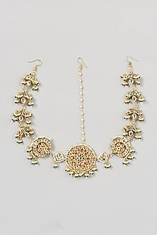 House of Vastraa presents a gold finish mathapatti studded with kundan polki, set in mixed metal.