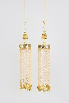 Gold Finish Kundan Polki & Charm Tying Kaleeras (Set Of 2)
