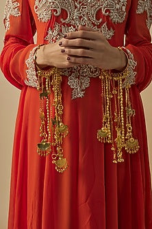 Gold Finish Kundan Polki & Charms Hanging Kaleeras (Set Of 2)