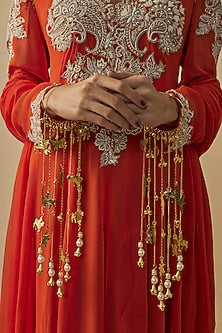 Gold Finish Kundan Polki & Charms Hanging Kaleeras (Set Of 2)