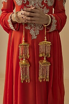 Gold Finish Kundan Polki & Pearl Strand Tying Kaleeras (Set Of 2)