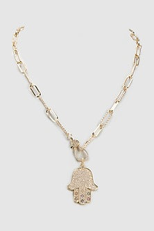Featuring a white mala studded with american diamonds, set in brass. Ideal for cocktail parties.