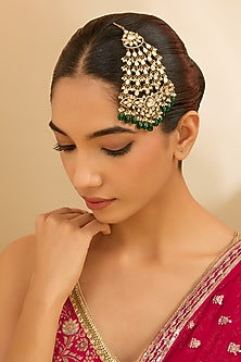 Two Tone Finish Kundan Polki & Green Beaded Pasa