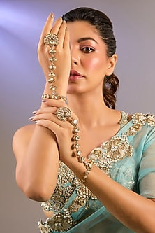 Two Tone Finish Kundan Polki Hathphool (Set Of 2)