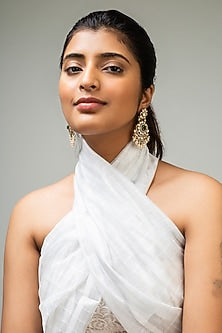 Featuring a pair of gold finish dangler earrings studded with green kundan polki, set in mixed metal. Perfect choice for weddings or other Indian festivities.